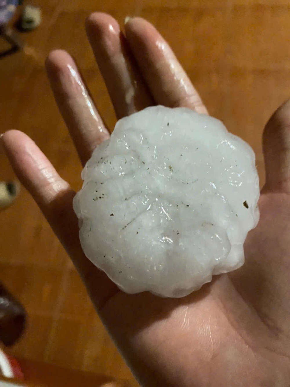 Mưa đá lớn dồn dập trút xuống trong đêm tạo ra những tiếng động kinh hoàng trên mái nhà. Nhiều người dân không khỏi ngỡ ngàng khi nhặt được những viên đá to bằng bàn tay.